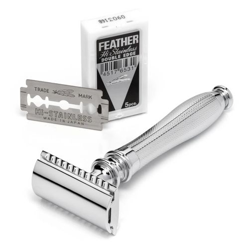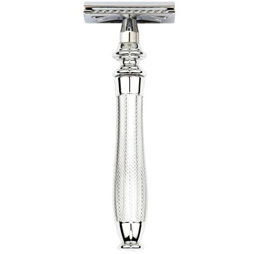 Традиционный Т-образный станок с хромированной ручкой. Узор на ручке — не просто украшение. Он облегчает использование бритвы даже мокрыми руками. Бритва оснащена закрытым гребнем и состоит из трех частей. Предназначена для ежедневного бритья. Технология тройного хромирования делает бритву надежным спутником мужчины на долгие годы. Долговечность позволит сэкономить на бритье не одну тысячу рублей (по сравнению с кассетными бритвами).