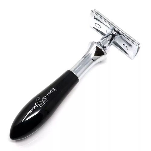 Традиционный Т-образный станок с акриловой ручкой цвета черной смолы. Бритва с закрытым гребнем и состоит из трех частей. Хромированные элементы украшают бритву и делают ее не только желанным аксессуаром, но и превосходным подарком. Бритва предназначена для ежедневного бритья. Долговечность бритвы позволит сэкономить на бритье не одну тысячу рублей.