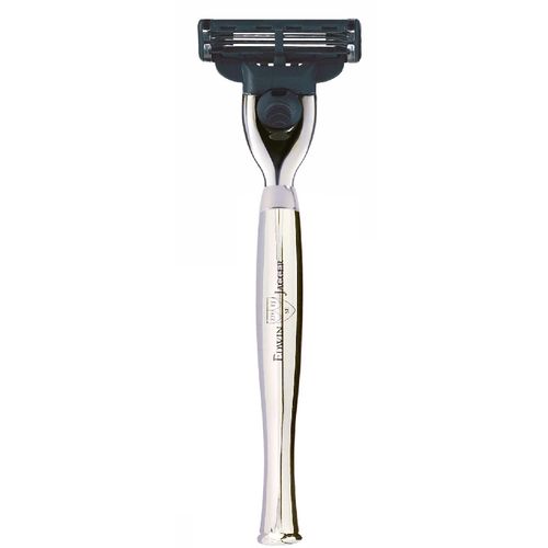Премиальный бритвенный станок английского бренда Edwin Jagger с системой Gillette Mach3 и хромированной глянцевой ручкой. Все элементы бритвы сделаны из высококачественной нержавеющей стали и покрыты хромом для придания блеска и дополнительной долговечности. Бритва поставляется в фирменной подарочной упаковке.