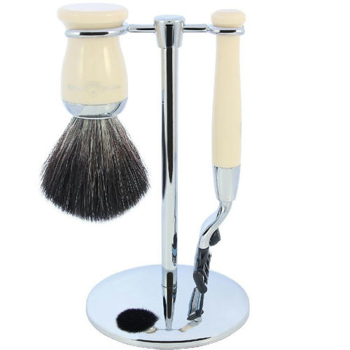 Набор цвета слоновой кости, который включает в себя все для комфортного и продуктивного бритья. Бритвенный станок с системой Mach3. Все металлические элементы бритвы сделаны из высококачественной нержавеющей стали и покрыты никелем для придания особого блеска и дополнительной стойкости к коррозии. Помазок из новой коллекции с ворсом Black Synthetic Fibre. Набор поставляется в подарочной упаковке.