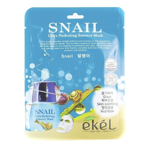 EKEL, Тканевая маска для лица с муцином улитки Snail Ultra Hydrating Essence Mask, 1 шт