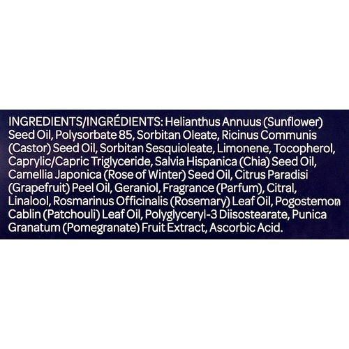 – содержит масла подсолнечника, семян чиа, семян камелии японской, касторовое масло;