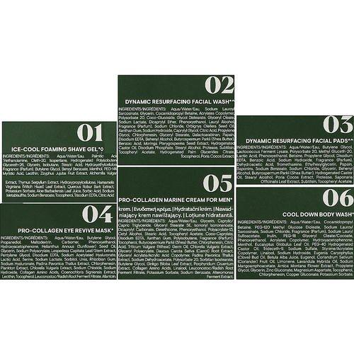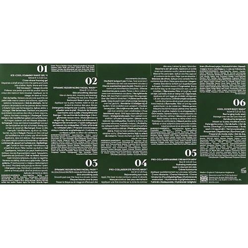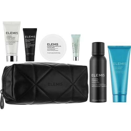 Состав набора: Крем для умывания – Elemis Dynamic Resurfacing Facial Wash , 30 мл + Обновляющие диски для лица – Elemis Dynamic Resurfacing Facial Pads , 14 шт. + Крем для лица “Морские водоросли” – Elemis Men Pro-Collagen Marine Cream , 15 мл + Гель для бритья – Elemis Men Ice Cool Foam Shave Gel , 100 мл + Крем-маска для глаз против морщин – Elemis Pro-Collagen Eye Revive Mask (мини) , 4 мл + Гель для душа “Охлаждающий” – Elemis Cool-Down Body Wash , 100 мл
