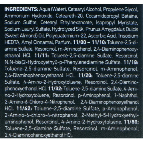 11/00 – Натуральный светлый блондин, 11/18 – Фиолетовый пепельный светлый блондин, 11/20 – Перламутровый светлый блондин, 11/32 – Переливающийся золотистый светлый блондин, 11/80 – Фиолетовый светлый блондин
