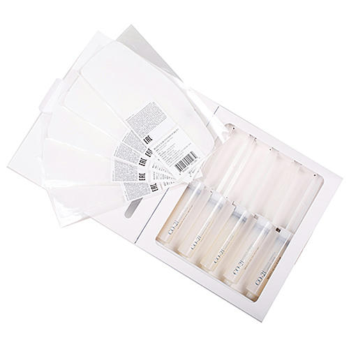 Набор состоит из 5 “шприцов” с гелем 5 масок для лица и 5 масок для шеи. В состав входят лимонная кислота и бикарбонат натрия, которые вызывают выделение углекислого газа, и большое количество растительных экстрактов,которые успокаивают, увлажняют, регенерируют и имеют антибактериальное и провоспалительное действие. Углекислый газ помогает экстрактам глубже проникать в кожу. Применение: шприцом нанести гель на лицо толстым слоем и распределить. Наложите маску-активатор и плотно прижмите на полчаса, а остаток вещества удалите с помощью спонжей.