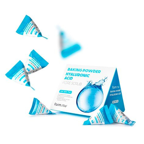 Скраб для лица Baking Powder Hyaluronic Acid Pore Scrub в удобной форме пирамидок для разового использования разработан специалистами бренда Farm Stay для эффективного очищения и увлажнения кожи, запуска процессов ее обновления.