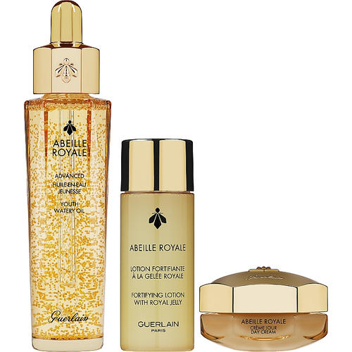 Состав набора: Масло для лица – Guerlain Abeille Royale, 50 мл + Дневной крем для лица – Guerlain Abeille Royale Day Cream 15 мл + Сыворотка для лица – Guerlain Abeille Royale Double R Renew & Repair Serum 7×0.6 мл + Укрепляющий лосьон-тоник для лица – Guerlain Abeille Royale Fortifying Lotion With Royal Jelly, 40 мл + Косметичка – Guerlain Bag