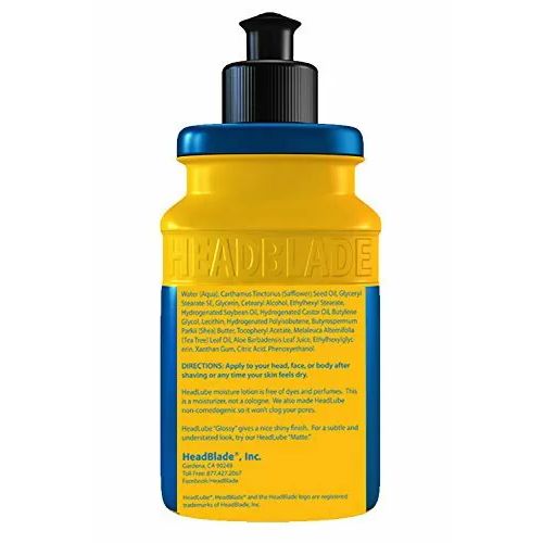 HeadBlade Lube Glossy Moisturizer – увлажняющий лосьон. Благодаря натуральным компонентам, маслу Ши и эфирному маслу чайного дерева, данное средство великолепно увлажняет кожу, избавляет от ощущения стянутости, питает и защищает в течение дня, даря ей эластичность и возвращая жизненный тонус, способствует регенерации. Входящие в состав увлажняющего лосьона HeadLube Glossy вода и сафлоровое масло придают красивый глянцевый блеск Вашей голове. При этом лосьон легко впитывается, не оставляя жирной пленки и не закупоривая поры.
