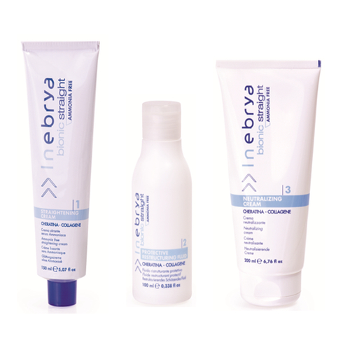 Безаммиачный крем Straightening Cream обволакивает каждый волосок, проникая глубоко в их структуру и разглаживая. Восстанавливающий и защитный лосьон Protective Restructing Fluid обеспечивает оптимальную гидратацию локонов, регенерирует поврежденные участки и запечатывает приподнятые кератиновые чешуйки. Это средство можно использовать также до, во время и после проведения процедуры выпрямления. Завершающим этапом является нанесение крема Neutralizing Cream, который нейтрализует действие первого компонента и закрепляет полученный результат.