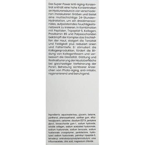 Aqua/Water/Eau, Glycerin, Betaine, Panthenol, Phenoxyethanol, Xanthan Gum, Ethylhexylglycerin, Carbomer, Disodium Edta, Pentylene Glycol, Biosaccharide Gum-1, Sodium Hydroxide, Soluble Collagen, Sodium Acetylated Hyaluronate, Sodium Hyaluronate, Sodium Benzoate, Sodium Hyaluronate Crosspolymer, Pantolactone, Hydrolyzed Sodium Hyaluronate, Palmitoyl Tripeptide-5, Tetradecyl Aminobutyroylvalylaminobutyric Urea, Trifluoroacetate, Citric Acid, Magnesium Chloride