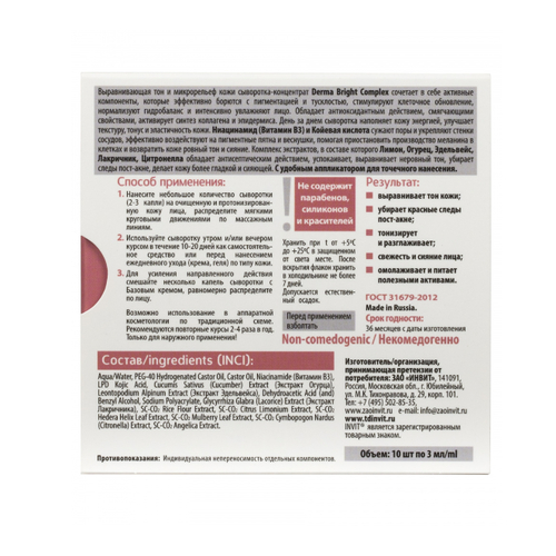 INVIT, Сыворотка-концентрат Derma Bright Complex, 10*3 мл