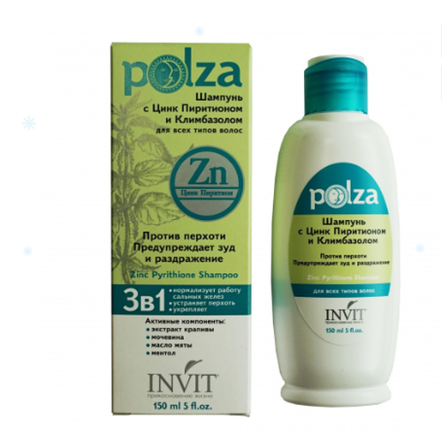 INVIT, Шампунь с Цинк-Пиритионом и Климбазолом Polza, 150 мл
