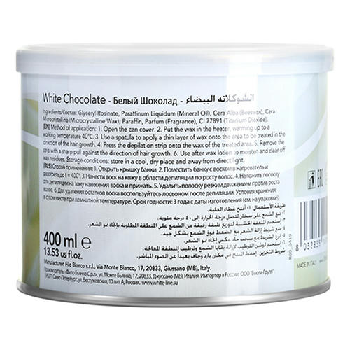 Воск средней плотности с диоксидом титана используется для удаления волос средней жесткости. Содержит масло какао, кофеин, теофиллин, обладает приятным ванильным ароматом.Воск Italwax обладает хорошей адгезивностью (способностью к сцеплению с волосками), что обеспечивает быстроту и эффективность процедуры депиляции. Волоски удаляются быстро вместе с корешками. Клиент получает минимальные болевые ощущения при процедуре и долговременный результат депиляции. Теплый воск Italwax имеет натуральный состав (сосновая смола и растительные добавки), что гарантирует бережное воздействие на кожу.