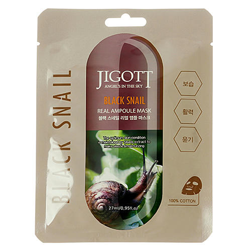 Jigott Маска ампульная с экстрактом слизи черной улитки – Black snail real ampoule mask, 27мл