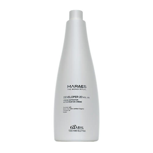 Эмульсия окисляющая 6% Developer 20 volume MARAES активирует химический процесс окисления и полимеризации искусственной молекулы цвета внутри и на поверхности волоса. В усовершенствованную формулу эмульсии входит большое количество кокосового масла, обеспечивающее максимальный уход и защиту кожи головы и волос от агрессивного воздействия химических ингредиентов, а также способствующее получению экономичной и пластичной консистенции красящего состава. Эмульсия имеет универсальный уровень pH, применяется для всех процедур окрашивания волос и идеально сочетается со всеми видами красителей компании Kaaral.