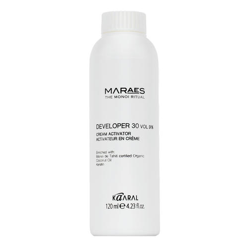 Эмульсия окисляющая 9% Developer 30 volume MARAES активирует химический процесс окисления и полимеризации искусственной молекулы цвета внутри и на поверхности волоса. В усовершенствованную формулу эмульсии входит большое количество кокосового масла, обеспечивающее максимальный уход и защиту кожи головы и волос от агрессивного воздействия химических ингредиентов, а также способствующее получению экономичной и пластичной консистенции красящего состава. Эмульсия имеет универсальный уровень pH, применяется для всех процедур окрашивания волос и идеально сочетается со всеми видами красителей компании Kaaral.