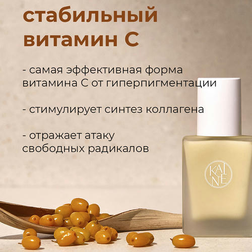 Экстракт облепихи 73%, содержащийся в осветляющая сыворотке, обладает колоссальной концентрацией витамина С и в 200 раз выше в сравнении с яблоком. Он оказывает мощнейшее антиоксидантное действие, улучшает цвет лица, препятствует возрастным изменениям и придает лицу мягкое свечение.