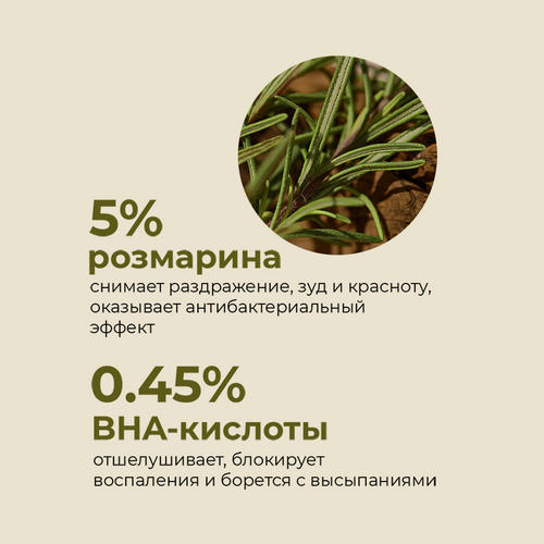 Экстракт розмарина 5% обладает антибактериальным действием, снимает раздражение, зуд и красноту