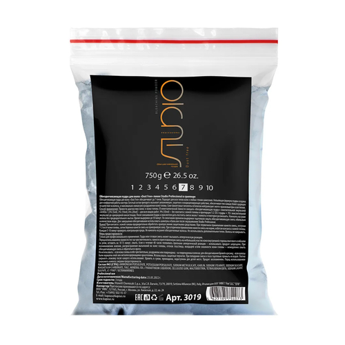 Обесцвечивающая пудра универсального действия предназначен для любых работ по обесцвечиванию: осветления, полного обесцвечивания, создания бликов или эффекта выгоревших волос, мелирования и т.д. Позволяет добиться осветления до 6-7 тонов. Непылящая формула порошка создана для комфортной работы мастера. Каолин и Maltodextrin (полимеры глюкозы), входящие в состав препарата, оказывают увлажняющее и защитное действие, обеспечивая тем самым более щадящее воздействие на волосы, максимально снижая риск раздражения кожи головы. Содержит сине-фиолетовые нейтрализующие агенты, которые действуют как оптический отбеливатель и эффективно борются с желтыми и оранжевыми пигментами на фонах осветления. Легко смешивается с «ActiOx» 1,5%, 3%, 6%, 9%, образуя однородную массу, которая не высыхает и не течет во время нанесения. Подходит для всех типов волос.