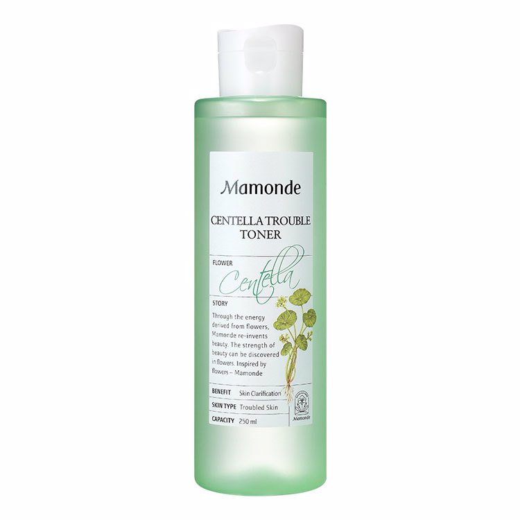 Mamonde Centella Trouble Toner – Успокаивающий тонер для лица в основе состава содержит 98,32% экстракта центеллы азиатской, очищает поверхности эпидермиса и успокаивает кожу, защищая ее от негативного воздействия окружающей среды. Уникальная формула позволит контролировать кожного сала и очищает омертвевшие клетки кожи с помощью натурального BHA.