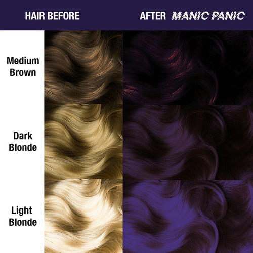 Purple Haze — теплый оттенок фиолетового, густой, как туман ранним утром, который плавно стелется, над лесным озером. Воистину выдающийся фиолетовый цвет, заслуживает вашего внимания, ведь он хорошо закрашивает даже светло-русые волосы, не требуя изнурительной процедуры осветления. Имеет характерный красный подтон. Краситель — это нежный кремовый пигмент, который готов к нанесению сразу из упаковки. Формула Amplified — более стойкая версия классической Manic Panic, которая создана для тех, кто хочет дольше обладать ярким цветом волос.