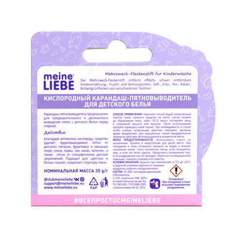 Кислородный карандаш предназначен для предварительного и деликатного очищения детского белья. Средство эффективно устраняет следы от детского питания, фруктов и ягод, соков, чая, какао, травы, ручки, красок, йода, зеленки, крови, специфических детских загрязнений. Пятновыводитель бережен к тканям, подходит для цветных и белых вещей. Компактный размер удобен для хранения и использования дома, в гостях и в поездках.