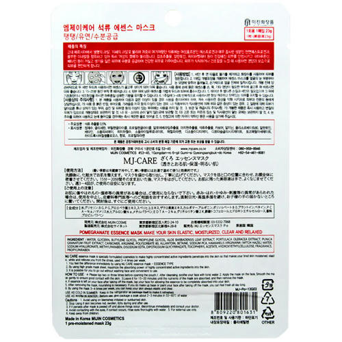 Тканевая маска с экстрактом граната Mijin MJ Care Pomegranate Essence Mask обладает выраженным омолаживающим и антипигментным действием. Основа маски состоит из 100% хлопка, пропитанного специальной эссенцией, которая плотно прилегая к лицу, обеспечивает быстрое проникновение питательных веществ в глубокие слои кожи. С первого применения маски заметен эффект свежести, осветления, упругости, молодости, увлажненности и подтянутости кожи. Эссенция маски, благодаря своему богатому составу, активизирует выработку коллагена в клетках, улучшает микроциркуляцию крови, тонизирует и наполняет кожу энергией, делая ее эластичной, ровной и мягкой.