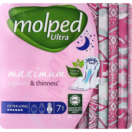 Гигиенические прокладки Ultra Night Deo Floral от Molped — хороший выбор для ночного времени суток. Такие изделия не имеют запаха, а их поверхность изготовлена из приятного на ощупь хлопкового материала. Верхний слой хорошо пропускает воздух, благодаря чему кожный покров не испытывает дискомфорта и не страдает от раздражения.