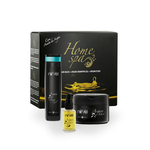 SPA-комплект по уходу за волосами Nirvel Argan Spa Complex с аргановым маслом включает в себя три средства для восстановления и ухода за поврежденными волосами: шампунь, маску и флюид.