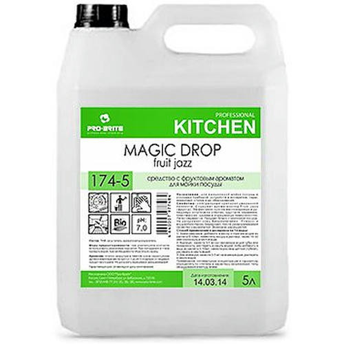 Гель-концентрат умеренной пенности с фруктовым ароматом против пищевых остатков на стекле и хрустале, керамике, пластике, нержавеющей стали, алюминии и цветных металлах, камне, др. поверхностях.