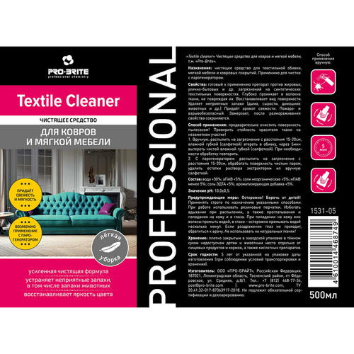 Pro-Brite: Текстиль Клинер 500мл для ковров и мягкой мебели