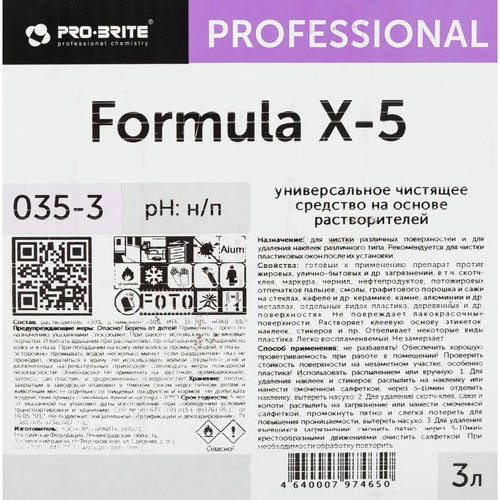Готовый к применению препарат против жировых, улично-бытовых и др. загрязнений, в т. ч. скотч-клея, маркера, чернил, нефтепродуктов, потожировых отпечатков пальцев, смолы, графитового порошка и сажи на стёклах, кафеле и др. керамике, камне, алюминии и др. металлах, отдельных видах пластика, деревянных и др. поверхностях.