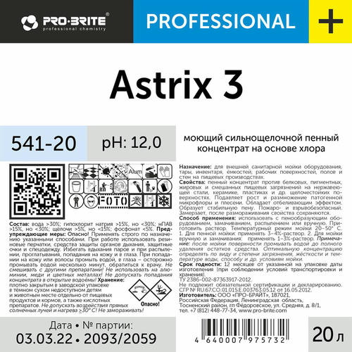 Pro-Brite: ASTRIX 3 20л cильнощелочной пенный концентрат на основе хлора