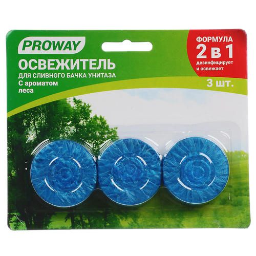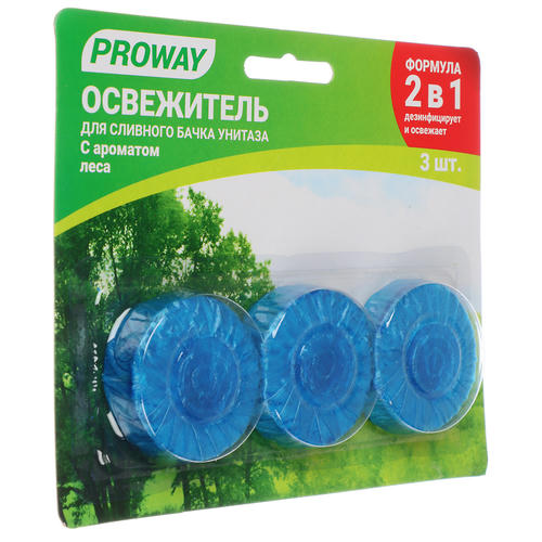 PROWAY Освежитель таблетка для сливного бачка унитаза “Лес” 32гр. 3шт, (ПАВ), блистер