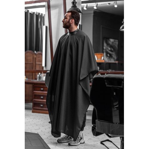 Rebel Barber Dark Obsidian – этот пеньюар отличается от прочих специальной защитой шеи, выполненной из высококачественного неопрена, который защищает шею от попадания волос, воды и прочих нежелательных раздражителей. Благодаря увеличенной длине (200 см) этот пеньюар закрывает и ноги и ступни клиента, защищая их от волос и воды, пока клиент сидит. Удобный, приятный на ощупь пеньюар подходит мужчинам и женщинам. Изготовлен из премиальной ткани, сделанной на заказ, в благородном черном цвете и украшен классическими винтажными полосами в духе времен Великого Гэтсби.