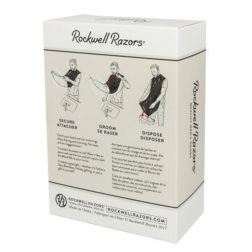 Rockwell Beard Bib – фартук для стрижки бороды с присосками крепится к зеркалу во время стрижки бороды. Это сохраняет чистоту в ванной комнате и защищает от засорившегося слива раковины.