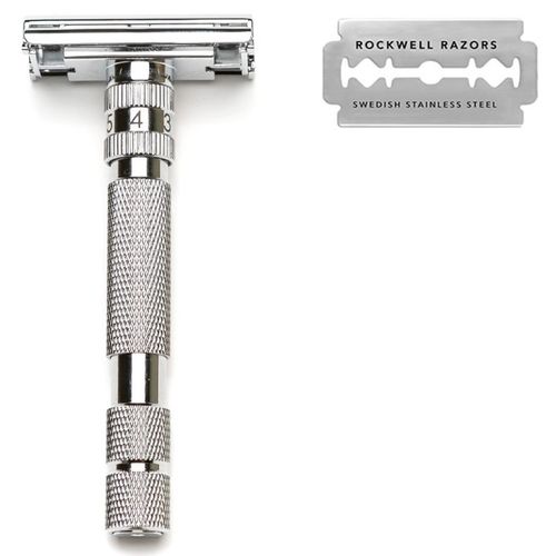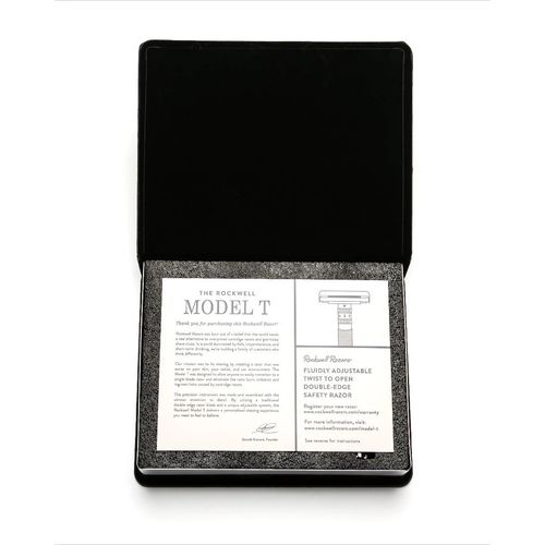 Rockwell Model T – Т-образная бритва. Это интуитивно понятная, простая в использовании бритва с лезвиями, регулируемыми циферблатом. Аксессуар полностью регулируется по типу кожи и длине волос на лице – просто поверните циферблат для идеального бритья. Инновационная плавно регулируемая конструкция Rockwell Model T обеспечивает совершенное, комфортное бритье, а также предотвращает раздражение и вросшие волосы. Станок оснащен единственным в своем роде, регулируемым механизмом, обеспечивающим точное, удобное бритье для любого типа кожи и длины щетины. Просто поверните диск, чтобы изменить зазор лезвия и экспозицию, контролируя комфорт и близость к коже.