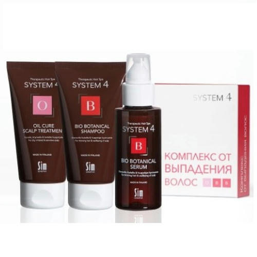 SIM SENSITIVE, Комплекс от выпадения волос мини SYSTEM 4 (Биоботанический шампунь + сыворотка + маска-пилинг “О”), 50 мл + 75 мл + 75 мл