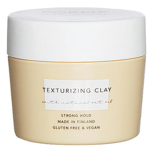 Для укладки волос специалисты финского бренда Sim Sensitive предлагает текстурирующую глину Forme Essentials Texturizing Clay. Средство сильной фиксации изготовлено на базе каолиновой глины, специально подобранных полимеров с добавлением овсяного масла и пироктон оламина.