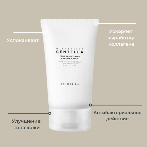 Успокаивающий крем дарит свежесть и сияние тусклой коже, успокаивает и снимает раздражения. Продукт на 60% состоит из экстракта центеллы азиатской. Он снимает воспаления, интенсивно увлажняет кожу, ускоряет выработку собственного коллагена, повышает упругость и эластичность.