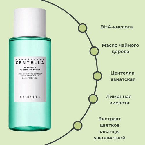 Tea-Trica™ — оказывает мощное антисептическое и успокаивающее действие. Борется с акне, уменьшает очаги воспалений и способствует заживлению повреждений, включает центеллу азиатскую и масло чайного дерева.