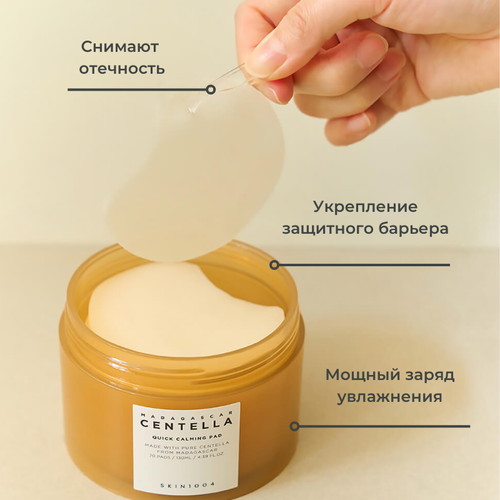 Успокаивающие пэды-патчи работают как мощный заряд увлажнения и мгновенно успокаивают раздраженную кожу. Экстракт центеллы 49% позволяет купировать воспалительные процессы, ускорить заживление и снять отечность.