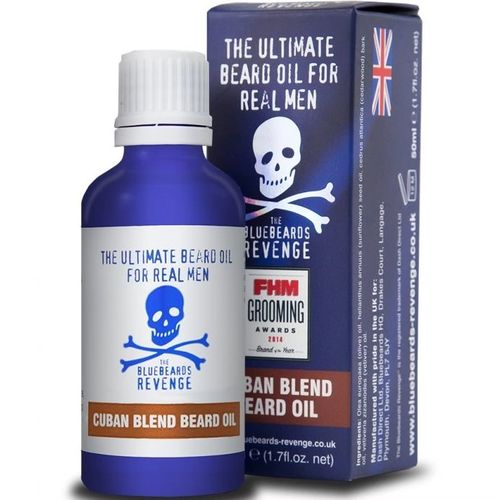 The Bluebeards Revenge Cuban Blend Beard Oil – масло по своему аромату напоминает, по словам, экспертов, хороший мужской одеколон. В состав «Кубинской смеси», навеянной экзотикой Карибского моря, входит масло оливы, подсолнечника, кедра и ветивера. Легкое по текстуре, масло идеально увлажняет бороду, придает ухоженный вид. Одновременно снимает раздражение и успокаивает кожу, защищает от перхоти и акне.