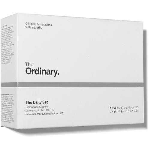 Состав набора: Сыворотка с гиалуроновой кислотой 2% + B5 – The Ordinary Hyaluronic Acid 2% + B5, 30 мл + Очищающий бальзам для лица – The Ordinary Squalane Cleanser, 50 мл + Натуральные увлажняющие факторы – The Ordinary Natural Moisturizing Factors + HA, 30 мл.