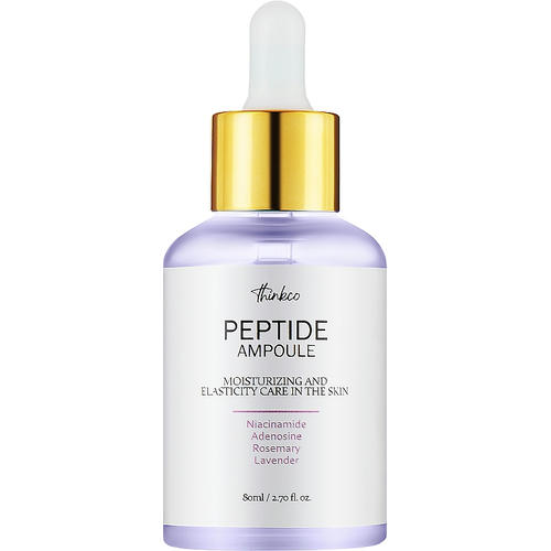 Омолаживающая сыворотка с пептидами Thinkco Peptide Shot Ampoule выравнивает рельеф, уменьшает глубину выраженных возрастных и мимических морщин, ускоряет синтез коллагена и эластина и восстанавливает упругость кожи.