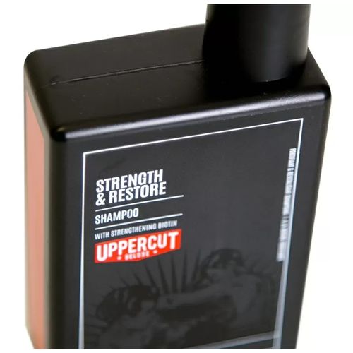 Разработанный для укрепления и восстановления тонких и тусклых волос, этот шампунь содержит биотин и кофеин, способствующие здоровому росту. Шампунь Uppercut Strength and Restore создает густую пену для тщательного мытья волос.