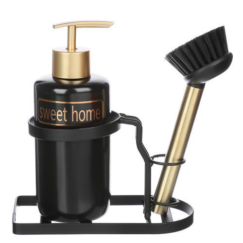 Диспенсер для моющего средства VETTA Sweet Home со щеткой и металлической стойкой станет незаменимым аксессуаром на вашей кухне. Черный с золотистыми элементами, он гармонично впишется в любой интерьер. Благодаря удобной металлической стойке, диспенсер можно разместить на любой поверхности, будь то столешница или раковина. А щетка из комплекта поможет быстро и эффективно очистить загрязненные поверхности. Объема диспенсера хватает на длительное время использования, а благодаря дозатору вы сможете контролировать расход моющего средства.