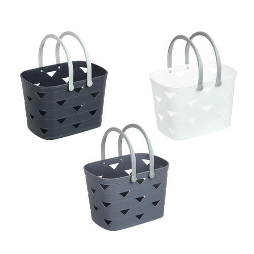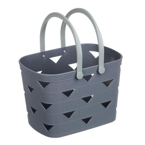 Корзина с ручками для хранения VETTA поможет организовать пространство в ванной комнате или на кухне. Декоративное оформление в виде треугольников несет также практическую функцию: сквозь отверстия в стенках циркулирует воздух и испаряется влага, поэтому содержимое остается сухим. Пластиковая корзина имеет компактный размер, легкий вес и удобные ручки для переноски. 3 цвета.