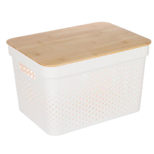 VETTA Корзина для хранения с бамбуковой крышкой Идиллия, 36x27x22см, белый
