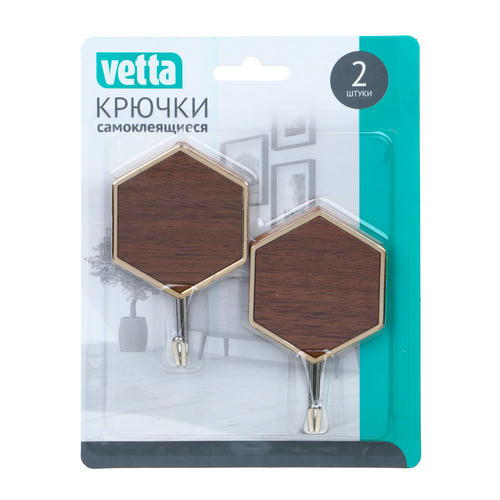 VETTA Крючки самоклеящиеся, Дерево, 2 шт, пластик, металл